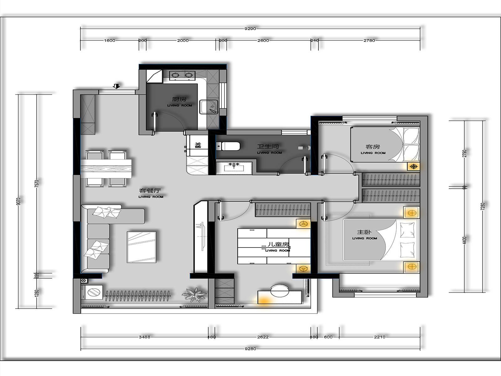 现代简约与奶油风的元素互相融合、贯通,运用柔和、简单、质朴自然的不同元素相互结合,营造安静、平和、温暖的家庭氛围。